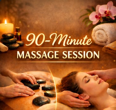 This 90-minute massage session allows for a deeper and more comprehensive treatment, fully tailored to your individual needs.